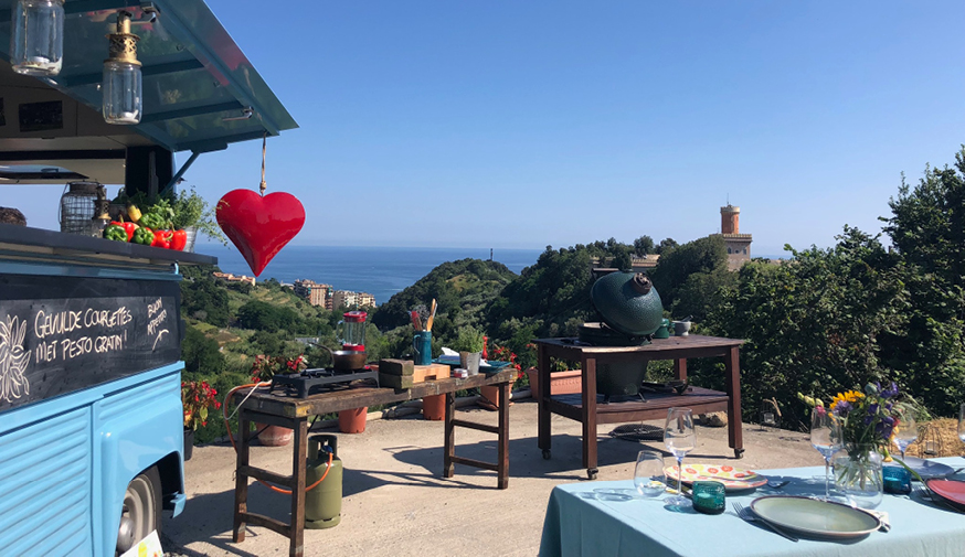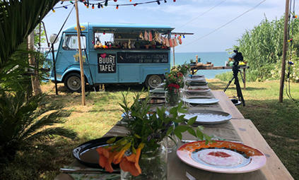 Op het strand zelf konden we de foodtruck niet opzetten, een paar honderd meter verder konden we wel staan,