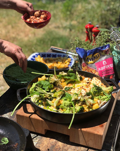 en zoete aardappel. Volgens Wim is dit zoveel lekkerder dan met gehakt. Wij konden helaas niet proeven want