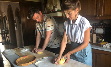 maken van z’n eigen deeg om zo crescia met rösti te maken. En het is gelukt! Eén van de Italianen aan tafel zei