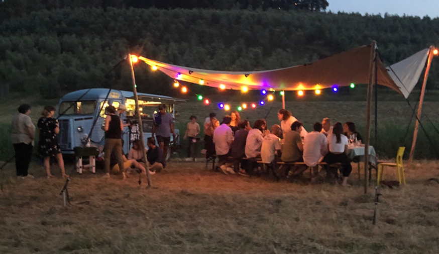 ’s Avonds bij de buurttafel verzamelde een aantal mensen uit de omgeving en een Nederlands stel, dat