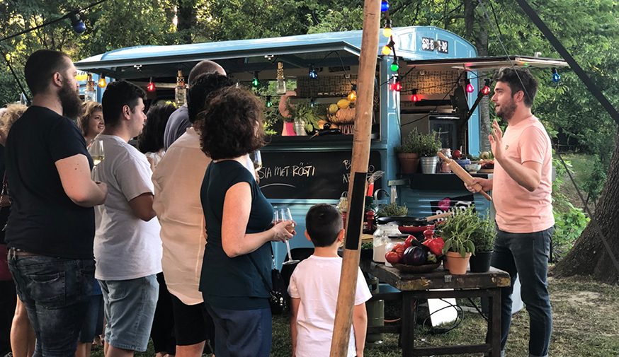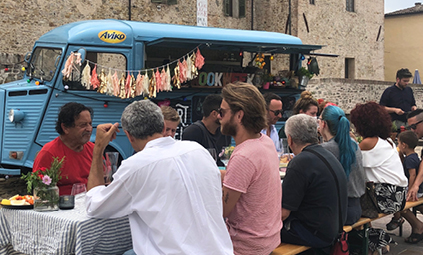 In het kleine plaatsje Sala Baganza, mochten we bij de Rocca di Sala Baganza onze foodtruck en buurttafel