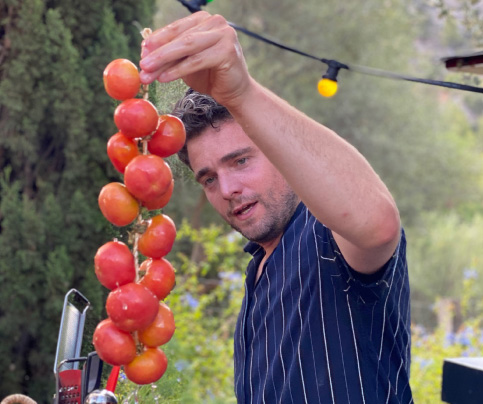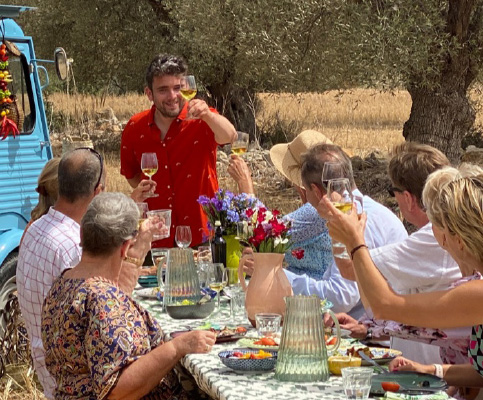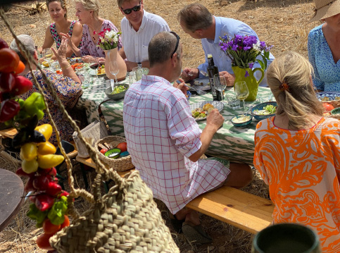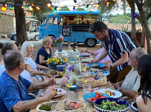 Het is of je zo een sprookje binnenloopt bij Fornet de La Soca in Palma, je blijft om je heen kijken. Uit deze piepkleine bakkerij komen de mooiste creaties. Tomeu Arbona heeft er z’n levenswerk van gemaakt om oude, authentiek Mallorcaanse recepten in ere te herstellen. Met oneindige liefde voor het eiland runnen hij en z’n vrouw Maria José deze prachtige bakkerij waar Wim ’s ochtends in alle vroegte mee mocht kijken hoe de ensaïmadas en nog veel meer heerlijkheden werden gemaakt. We mochten niet vertrekken voor we een heerlijk ontbijt hadden genoten. ’s Avonds waren we te gast bij Finca Bellveure van de familie Marques y Pons. Een prachtige locatie met een adembenemend uitzicht over het dorp Binissalem. Deze lieve mensen stelden hun finca voor ons beschikbaar. Ze maken daar ook geweldige Mallorcaanse serveerplanken, daar hebben we er natuurlijk ook gelijk een paar van meegenomen.