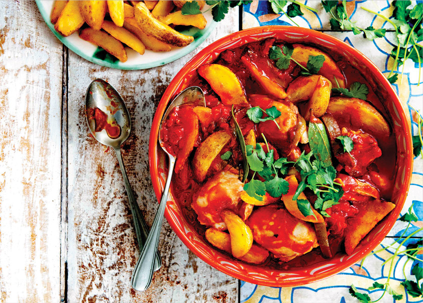 Caldereida is officieel een visstoofpot met aardappel. Wij maken ‘m hier met kip omdat kip wat makkelijker verkrijgbaar is. Natuurlijk kun je ‘m ook maken met vis als je wilt.