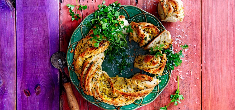 - Bak het brood in de voorverwarmde oven in 20-25 minuten goudbruin en gaar. Laat de krans uit de oven afkoelen op een rooster.