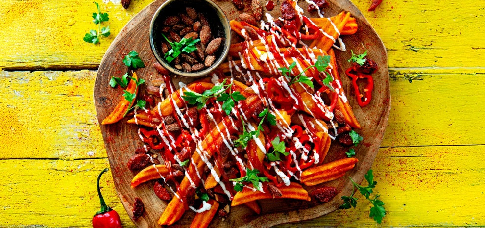 - Weinig tijd? Maak deze allerlekkerste loaded ‘patatas’: Wavy friet met chorizo, paprika, salsa brava en aioli. Ook top als tapa met een schaaltje amandelen.