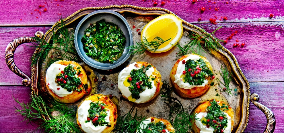 • Gratins doen het altijd goed op tafel! Maak ze extra feestelijk met een dotje crème fraîche, wat salsa verde en roze peperbessen.