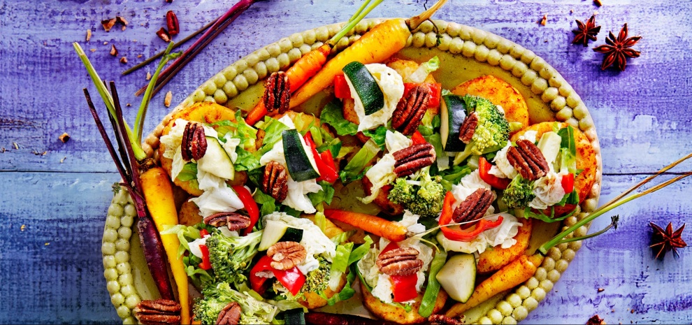 - Wasabi, pickled groenten en gezouten pecannoten: deze röstirondjes combineren alle trendy smaken in één topping.