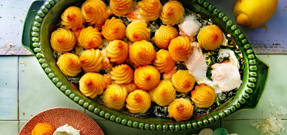• De combinatie van spinazie, zalmfilet en luchtige duchesses is er een waarmee je iedereen een plezier doet. De kruidenroomkaas zorgt voor een romige smaak