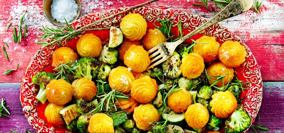 • Houd het eenvoudig, schuif een schaal groenten met feestelijke duchesses in de oven. Zo heb jij je handen vrij voor de rest van het hoofdgerecht.