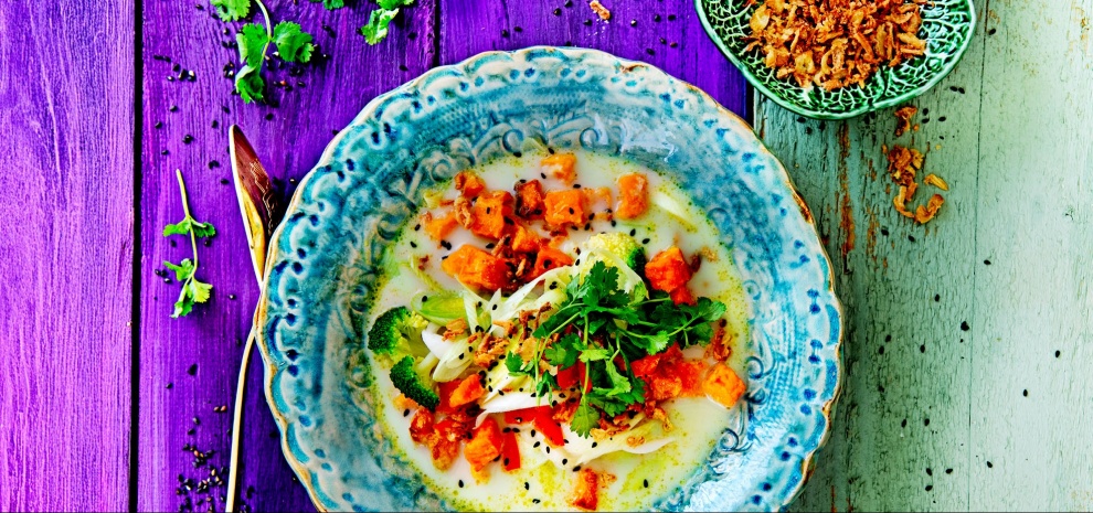 Groene currysoep met zoete aardappel