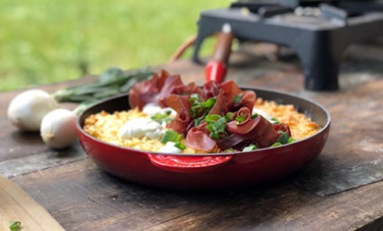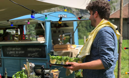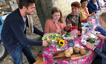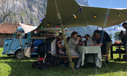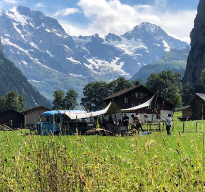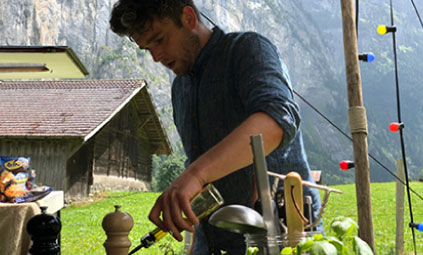 Lekkere Zwitserse lambsboutWim pakt lekker uit op de laatste locatie van de Buurttafel on Tour in Zwitserland. Wim zou Wim niet zijn om ‘m extra lekker te maken met z’n eigen ‘glaze’. We hebben nog nooit zo’n lekkere lambsbout gegeten, midden in de prachtige natuur van Lauterbrunnen.
