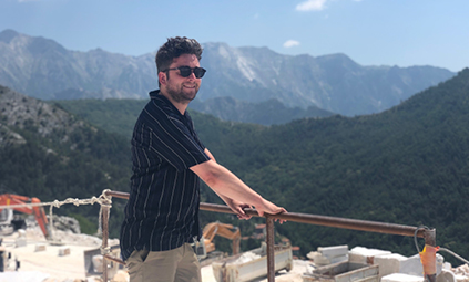 De gids nam de cameraploeg mee naar een marmergroeve om een mooie locatie uit te zoeken voor de