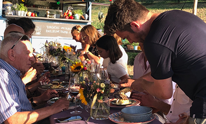 In het kleine plaatsje Sala Baganza, mochten we bij de Rocca di Sala Baganza onze foodtruck en buurttafel