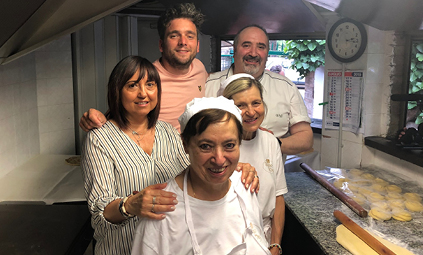 ’s Ochtends was het eerst verzamelen bij het beroemde familie slagersbedrijf van Andrea, waar ook Janneke