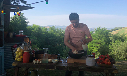 maken van z’n eigen deeg om zo crescia met rösti te maken. En het is gelukt! Eén van de Italianen aan tafel zei