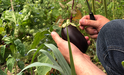 zeiden al: “Jullie komen zeker voor de melanzane?” Ze liet Wim de tuin zien, vertelde over de oude bakoven