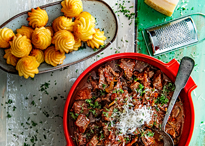 Janneke maakte in San Miniato Toscaans stoofvlees met Pom’ Duchesse. Deze geweldige stoofpot moet je echt zelf proberen!