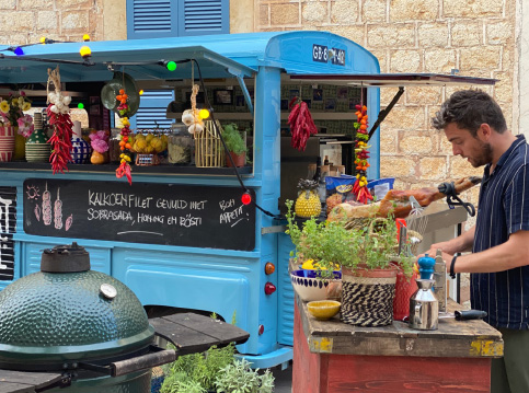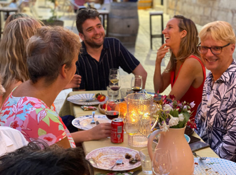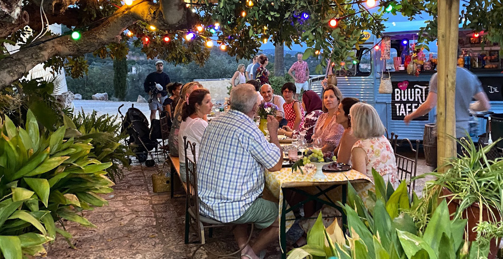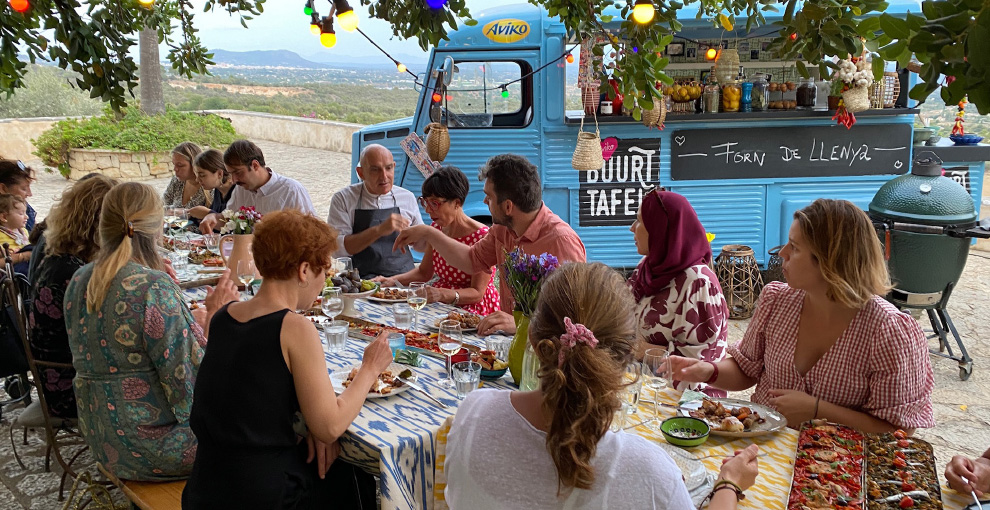 Het is of je zo een sprookje binnenloopt bij Fornet de La Soca in Palma, je blijft om je heen kijken. Uit deze piepkleine bakkerij komen de mooiste creaties. Tomeu Arbona heeft er z’n levenswerk van gemaakt om oude, authentiek Mallorcaanse recepten in ere te herstellen. Met oneindige liefde voor het eiland runnen hij en z’n vrouw Maria José deze prachtige bakkerij waar Wim ’s ochtends in alle vroegte mee mocht kijken hoe de ensaïmadas en nog veel meer heerlijkheden werden gemaakt. We mochten niet vertrekken voor we een heerlijk ontbijt hadden genoten. ’s Avonds waren we te gast bij Finca Bellveure van de familie Marques y Pons. Een prachtige locatie met een adembenemend uitzicht over het dorp Binissalem. Deze lieve mensen stelden hun finca voor ons beschikbaar. Ze maken daar ook geweldige Mallorcaanse serveerplanken, daar hebben we er natuurlijk ook gelijk een paar van meegenomen.