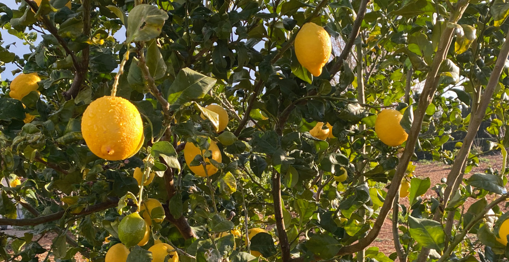 sinaasappels dus plukte Wim er citroenen. Die zijn hier super sappig.