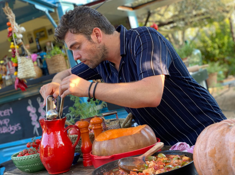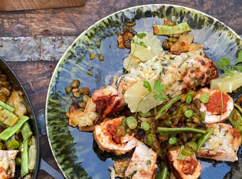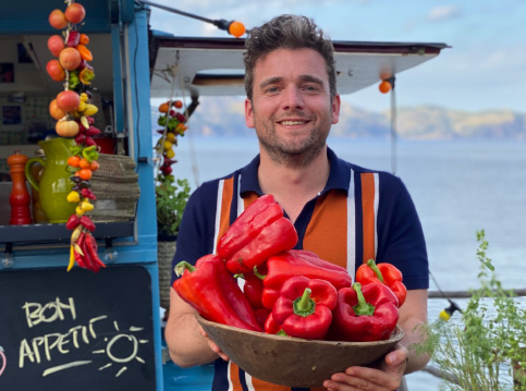 Wim gaat in deze uitzending met met Damià, hij maakt niet alleen sobrasada maar verbouwt ook z’n eigen Tap de Corti, een belangrijk ingrediënt voor het maken van sobrasada. Deze peper zorgt voor de kleur, smaak en geur van veel typisch Mallorcaanse gerechten. Wim maakt er geroosterde paprika’s met Ibérico ham, aardappelkrokantjes en romescosaus mee. Het ziet er zo lekker uit!Naar recept Alle afleveringen