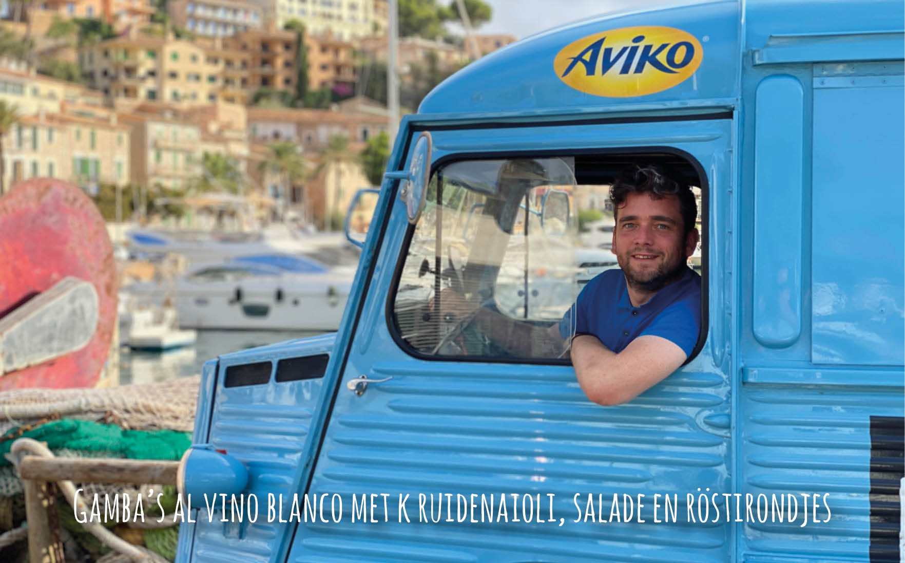 Wim heeft al veel gehoord over de gamba’s van Sóller en haalt ze rechtsteeks van de boot in de haven. Om er vervolgens voor een mooi gezelschap een heerlijk diner mee te bereiden bij de vuurtoren van deze prachtige plaats. Hij Maakt gamba’s al vino blanco met kruidenaioli, salade en röstirondjes. Supermakkelijk en ongelooflijk lekker.Naar recept