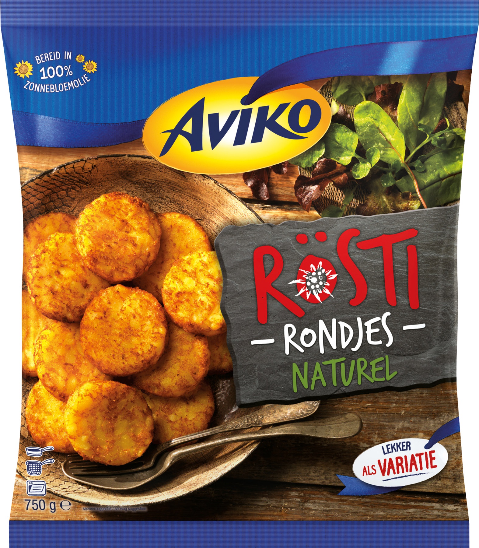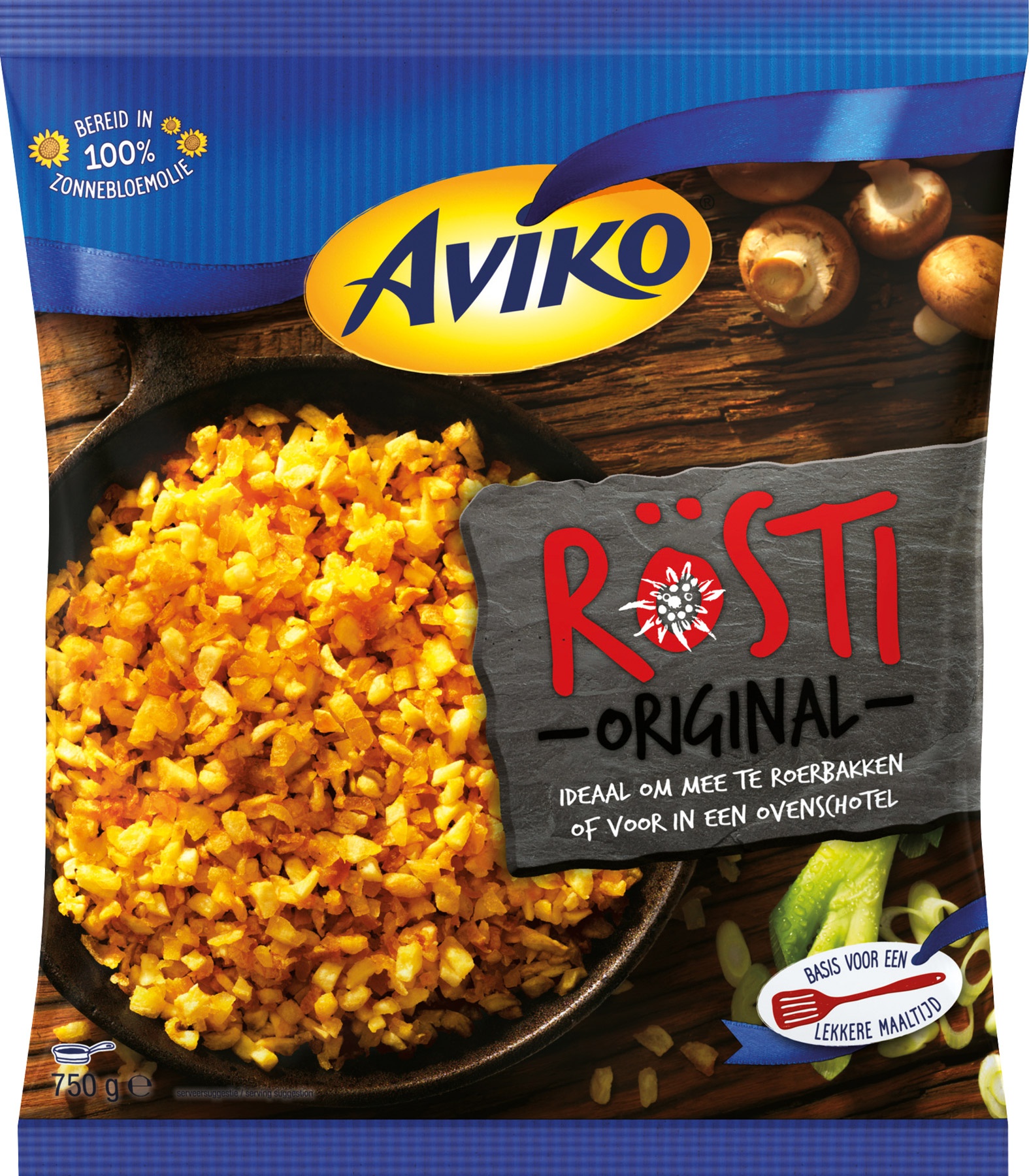 Aviko Rösti Original is een heerlijk aardappelgerecht van grof geraspte aardappelen, waarmee eindeloos gevarieerd kan worden. Bak de Rösti knapperig op in de koekenpan of gebruik het als basis voor een wokschotel of ovenschotel met groenten, vlees of vis.
