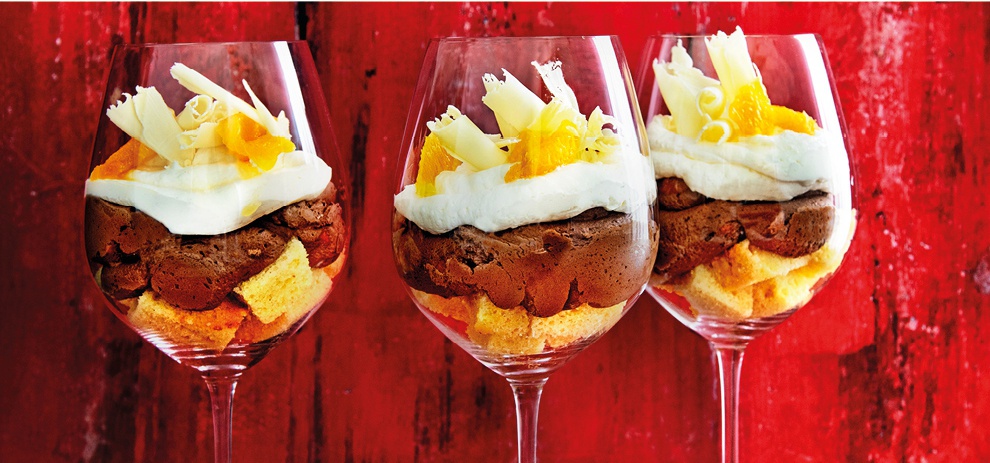 Chocolade-sinaasappeltrifle met zoete aardappel