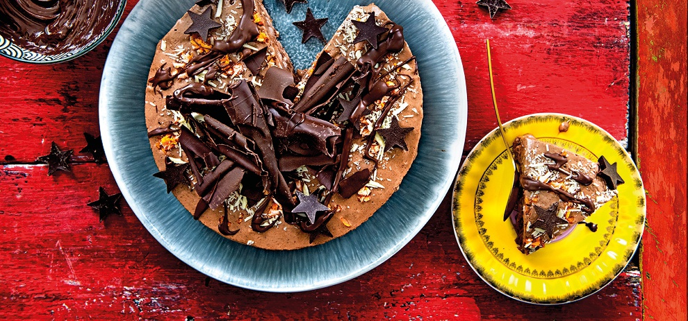 • Tip: Garneer de ijstaart met feestelijke chocoladekrullen of -sterretjes.