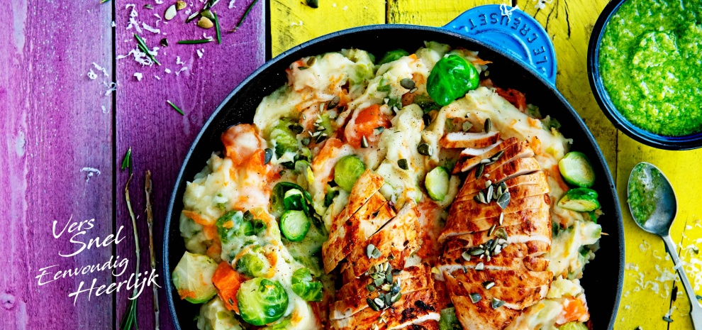 • Spruiten en pompoen: een perfecte herfstcombinatie in deze eenpanner met pittige kip en rozemarijn.