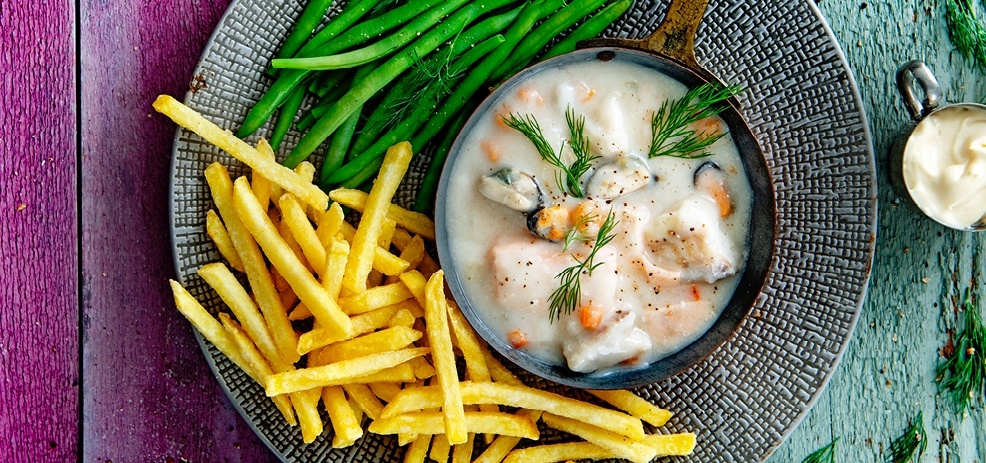 - Een klassiek vispannetje hoort in ieders receptrepertoire. Kies je favoriete vissoorten en serveer met knapperige Franse friet en haricots verts. Citroenmayonaise mag niet ontbreken!