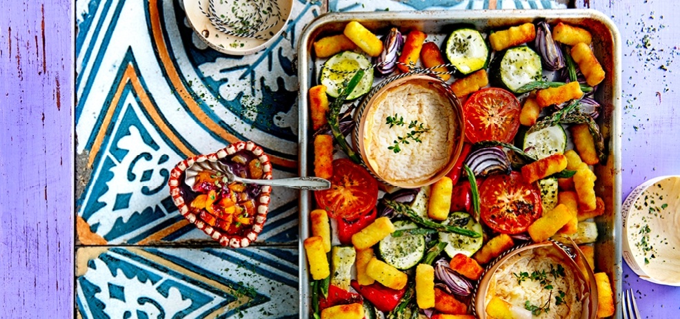 - Serveer de groentetraybake met de krokante aardappelkroketjes om in de gesmolten kaas en de warme chutney te dippen.