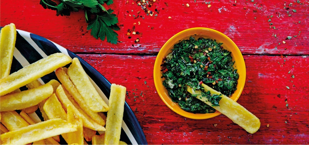 - Chimichurri is een befaamde Zuid-Amerikaanse saus, om bij gegrild vlees te serveren. Als stoere dip bij friet minstens zo lekker!