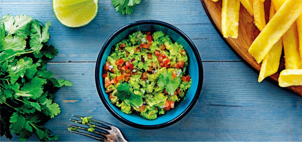 • Tip: Pureer voor een gladde guacamole de avocado met de staafmixer glad. Schep er naar wens tomaat, rode ui en rode peper door en breng op smaak met limoensap en zout.