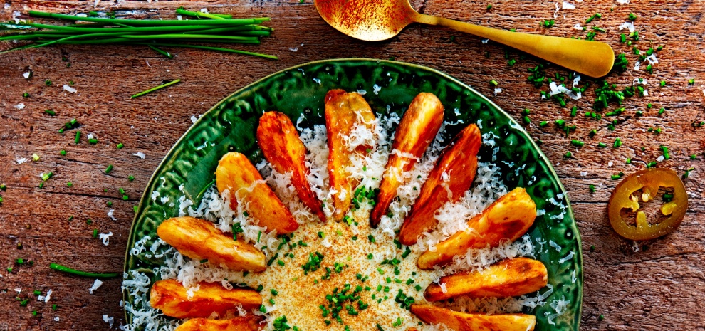 - Een pittige jalapeñodip met krokante gekruide aardappelpartjes met Parmezaanse kaas. Perfect om met z’n allen te delen en samen van te genieten!