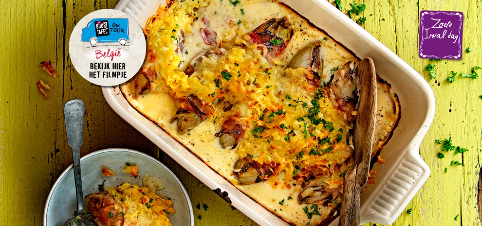 • Bak de witlofgratin in de voorverwarmde oven in 25 minuten goudbruin en gaar.